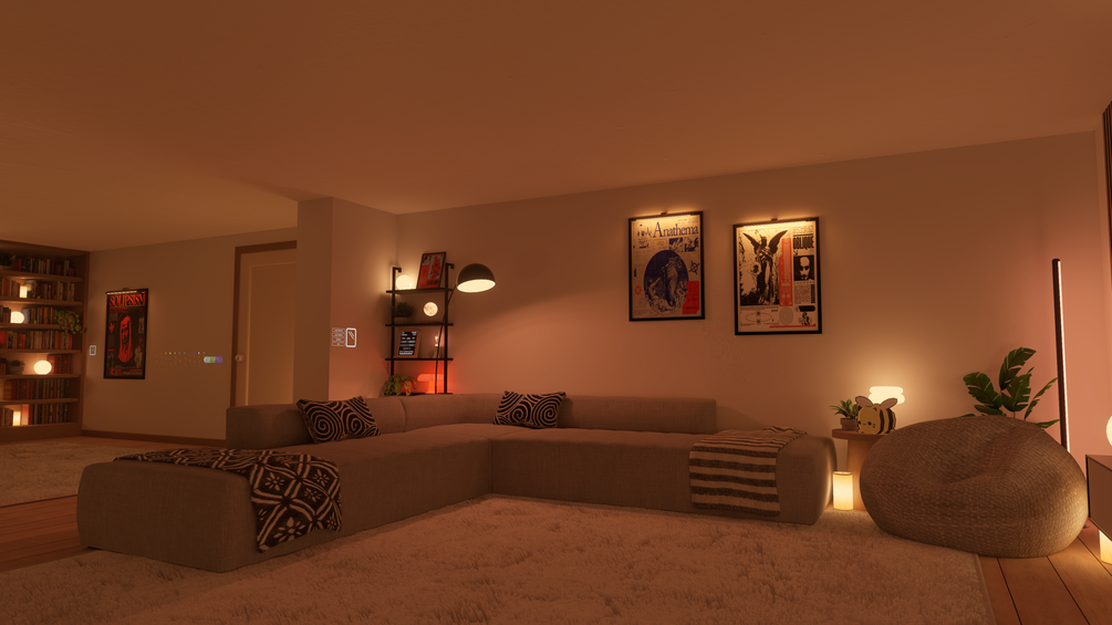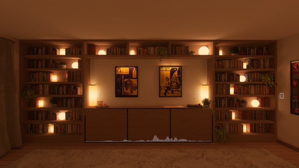 Midnight Groove is a chill "boy apartment" type world. It's got everything you could want, include games, a video player, and mirrors. It also features some of my new custom assets, like an animated record player, custom spin the bottle (drinking or regular questions), and a UI tablet to control everything!